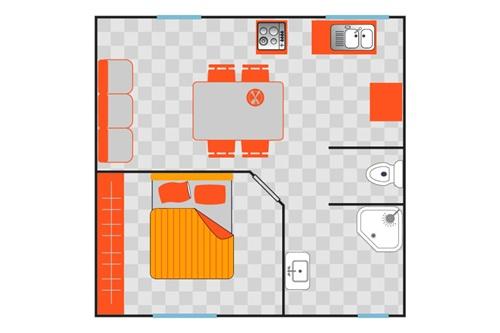 - 1x tweepersoonsbed (140x190cm)